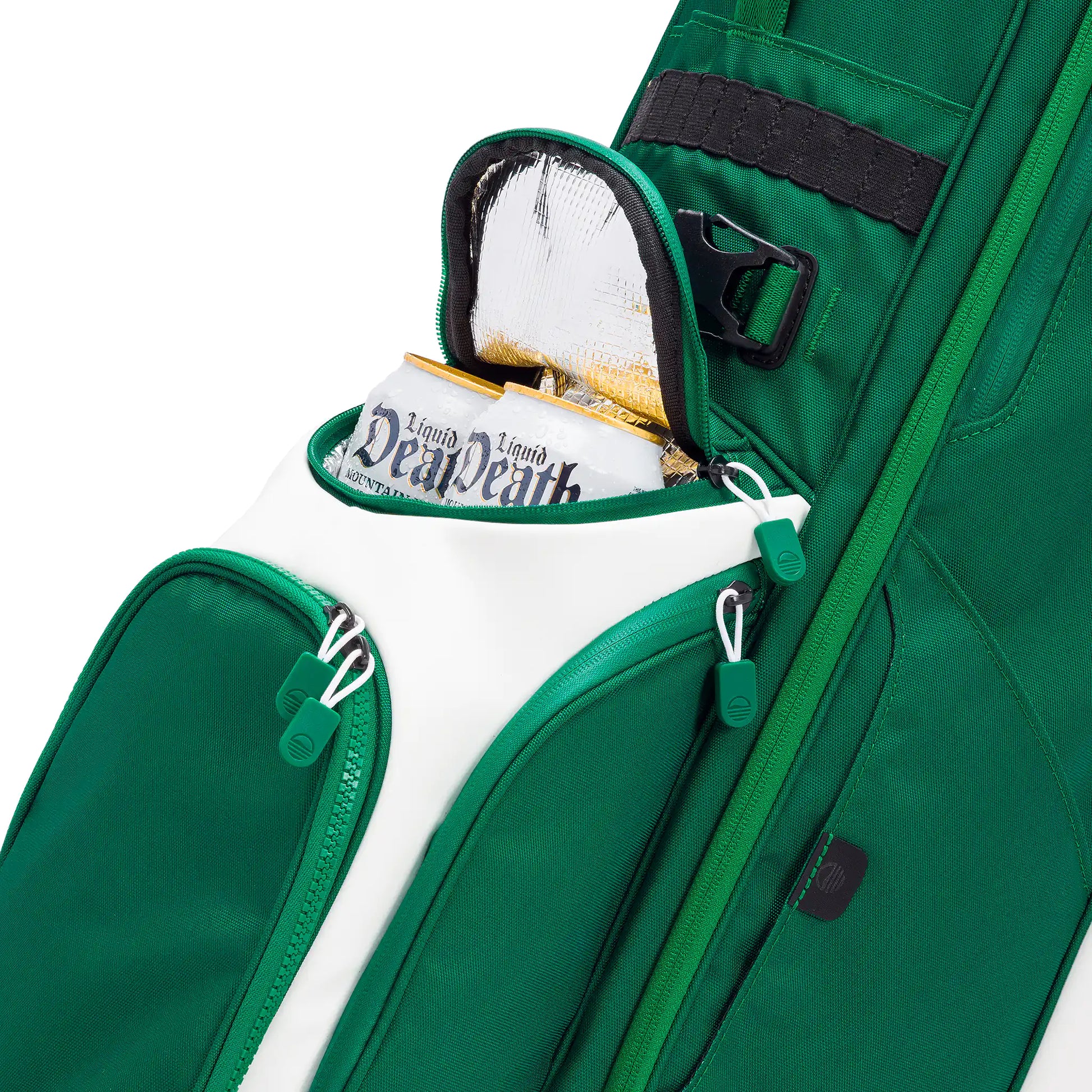 The Golf Bag features unique storage options, including an Insulated Frosty Pocket that chills up to four cans, perfect for keeping drinks cool on sunny days. It also has a Smell Proof Pocket for discreetly storing personal items, maintaining their freshness. Moreover, the bag is fitted with high-tech, water-resistant zippers, offering essential protection in varied weather, ensuring your gear remains dry and safe. These aspects together boost the bag’s practicality, making your golf rounds more enjoyable.